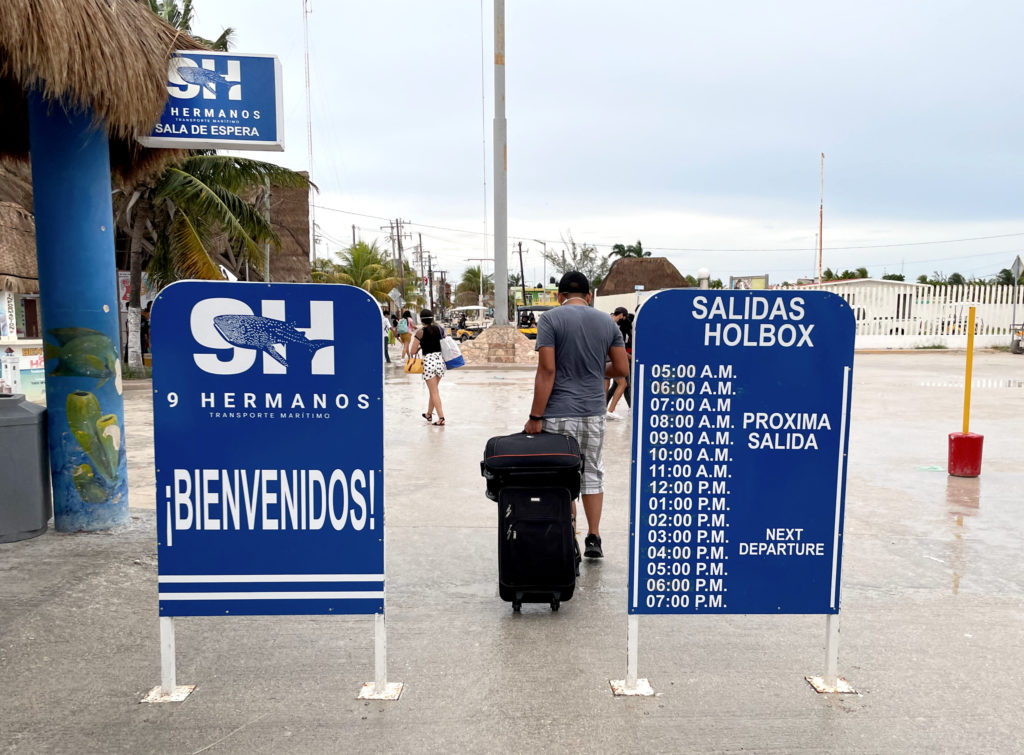Our concern was making it to the last ferry, but that was not a concern as we made it in plenty of time (this photo is from the Isla Holbox side, but gives you an idea of ferry times).