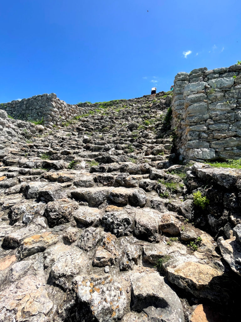 This is the site of Kinich Kakmo, which is a pyramid built for the sun god. There is no entrance fee for this ruin, so we simply walked up to the top and back down.