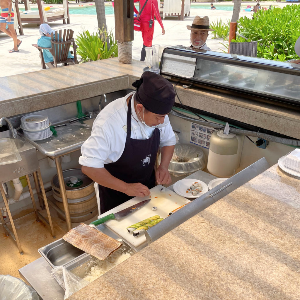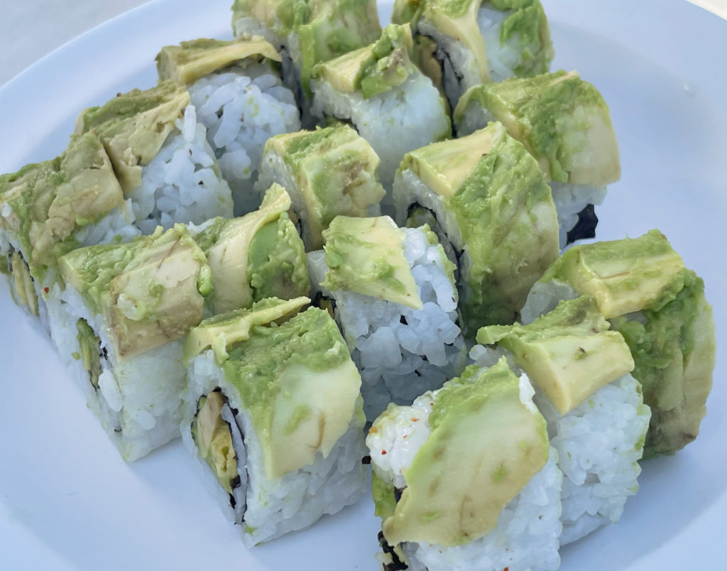 The sushi chef was able to make us vegetarian sushi (avocado/aguacate or carrot/zanahoria) by request.