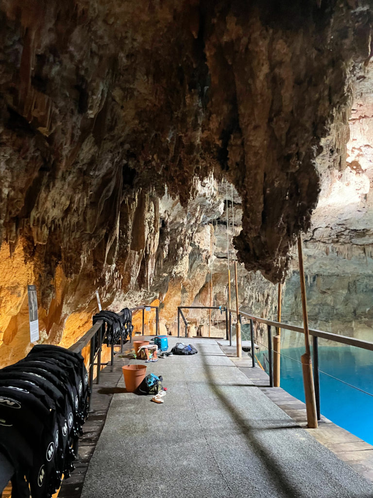 Before entering the cenote, everyone had to take a shower, which is standard practice to clean you off. We are also careful about using reef-safe sunscreens when we travel, to minimize any effects on natural areas.