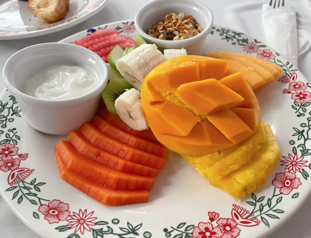 I enjoyed a lot of fruit at breakfast, which is so fresh and delicious in Mexico.