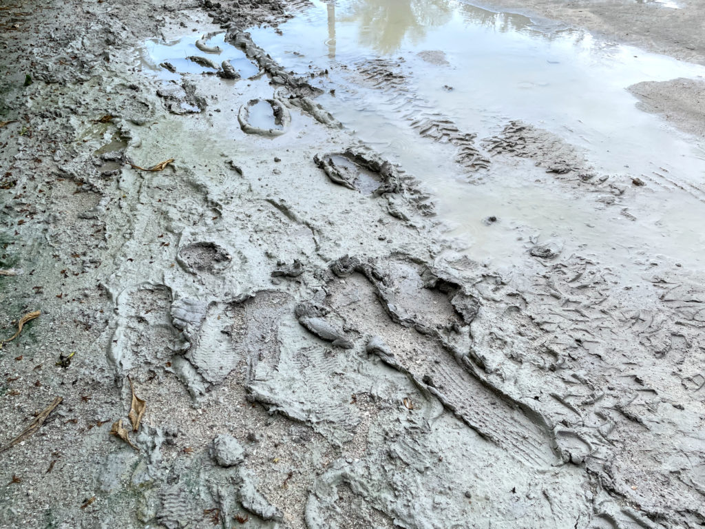 Not only are there puddles and mud, but sometimes the fastest, most direct route was via the beach, and some spots mean walking through some water, so wear shoes that you can take off to wade, or something comfortable that can also get wet.