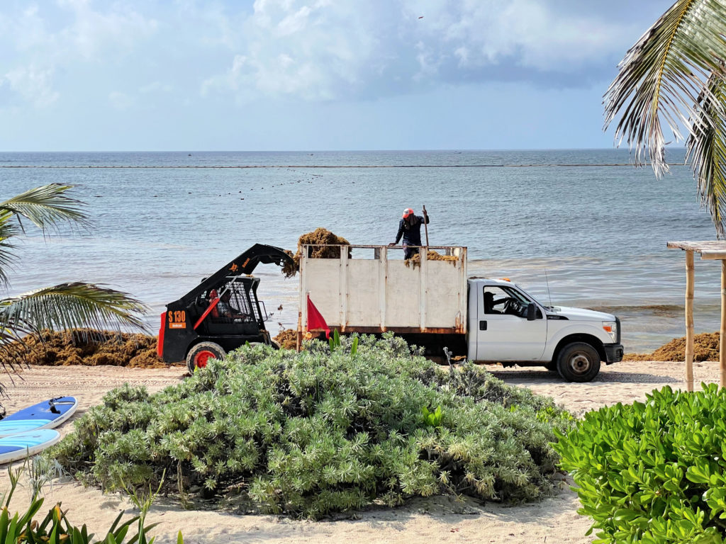 Most resorts attempt to remove the seaweed for their guests, but employees are often tirelessly working all day to no avail, as the seaweed washes up faster than it can be removed.