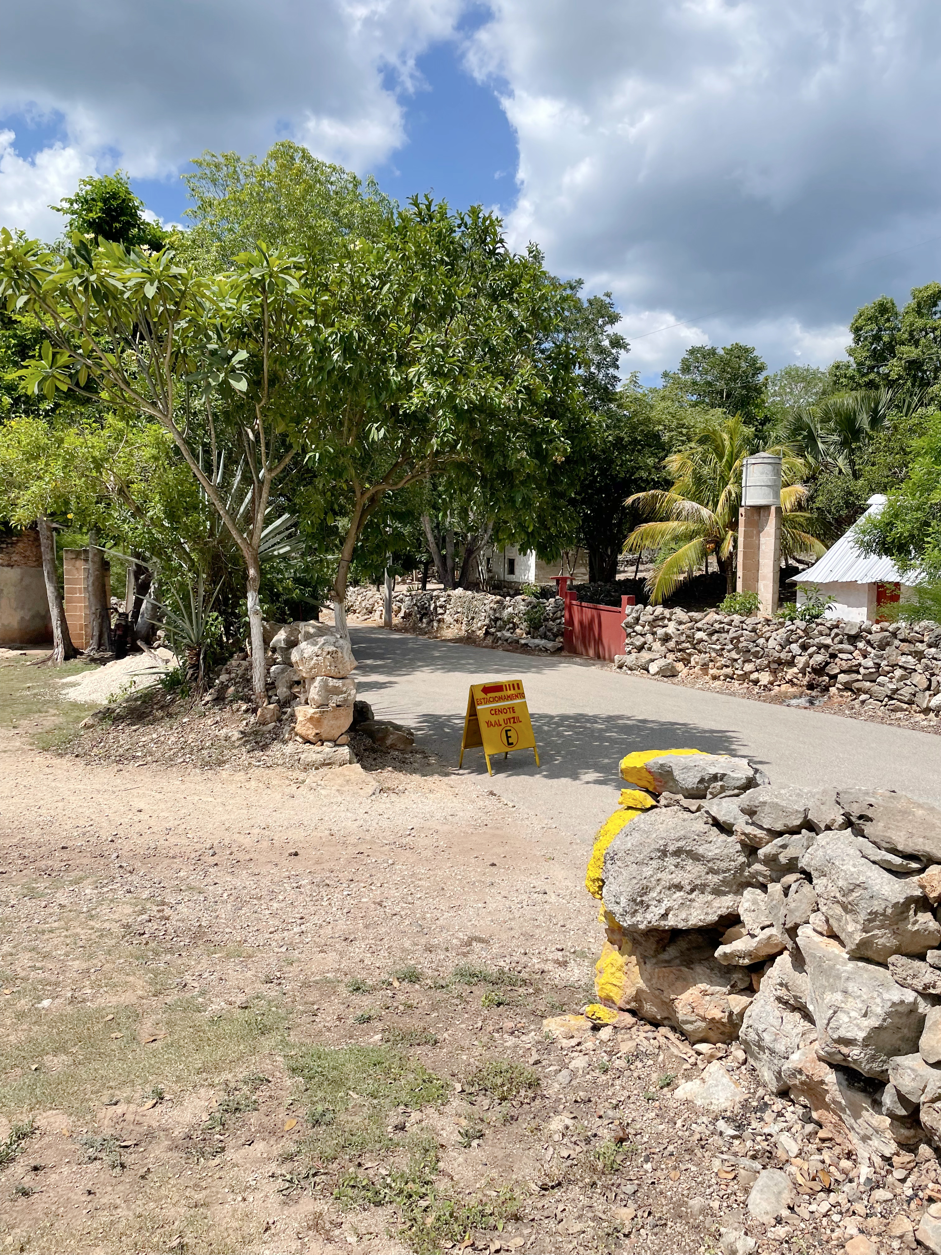 We headed over to the cenote entrance, but needed some direction along the way as we had to walk through someone’s yard to get there. The cenote itself has signs and a fence around it.