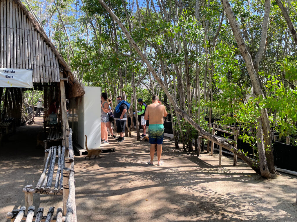When we got on the island, we were told we couldn’t have our bags with us, and that we would have to rent lockers. It was a little bit annoying not to be told this ahead of time, as we had to shuffle everything and get changed and then go back to the lockers. We would have changed ahead of time and planned accordingly if we had known. However, I do understand because we saw the raccoons trying to get into the employees bags.