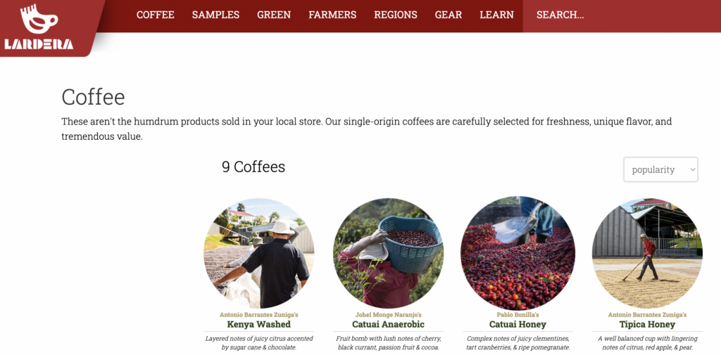 The coffees come with detailed descriptions. Along with the description you can also read about the farms and families.