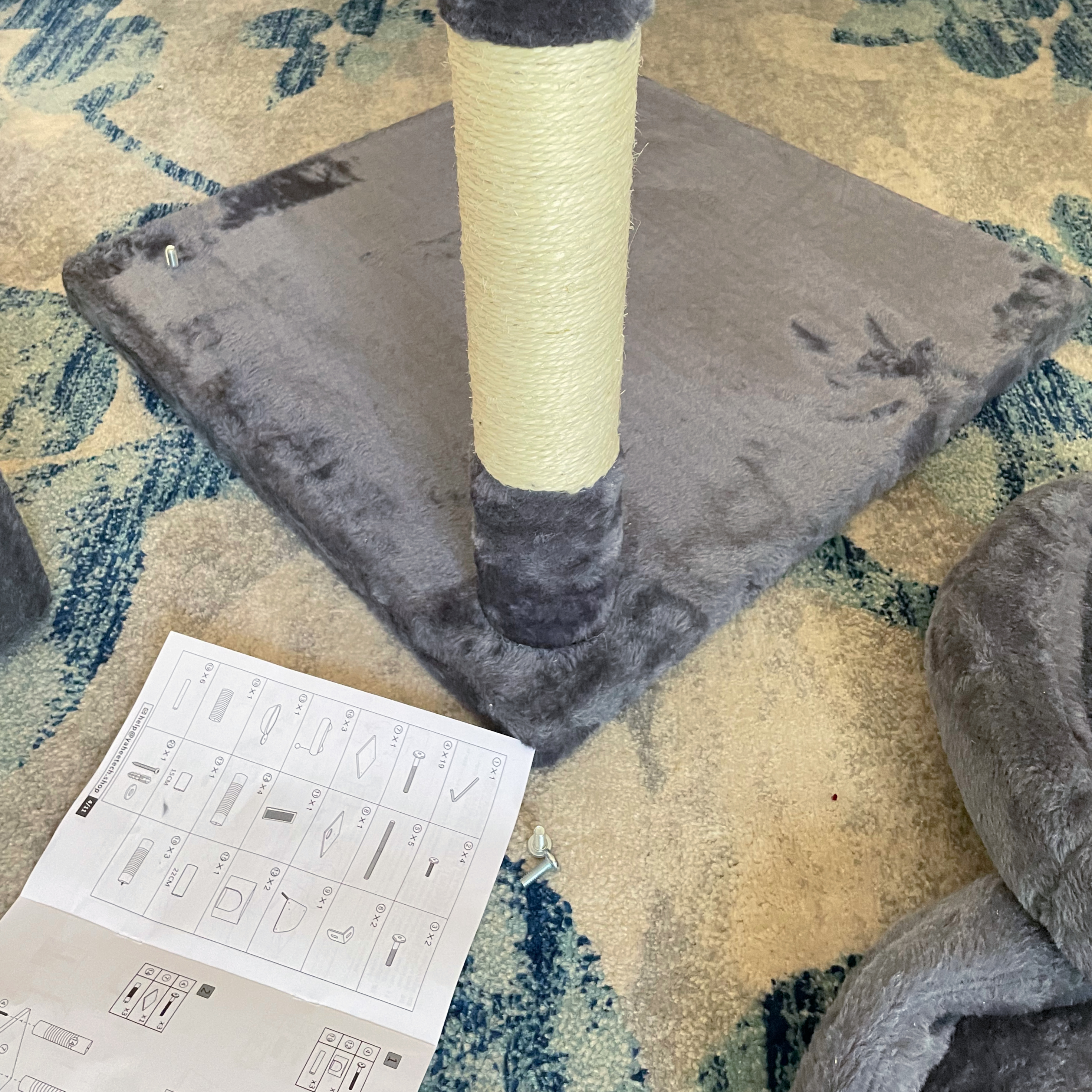 Each part has a number on it, and the manual is very concise, so there was no difficulty in putting together the cat tree.
