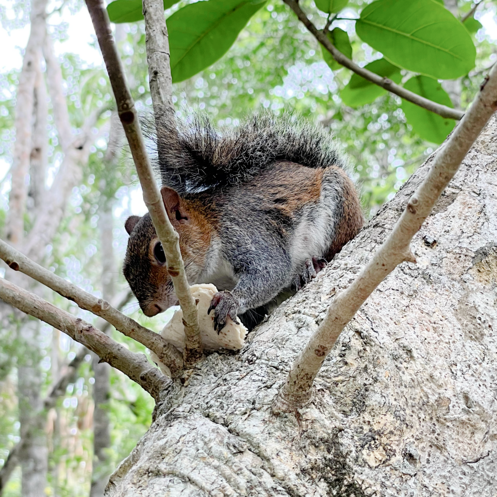 There were some snacks set up for the wildlife, and we saw this cute squirrel enjoying a tortilla on our way in!