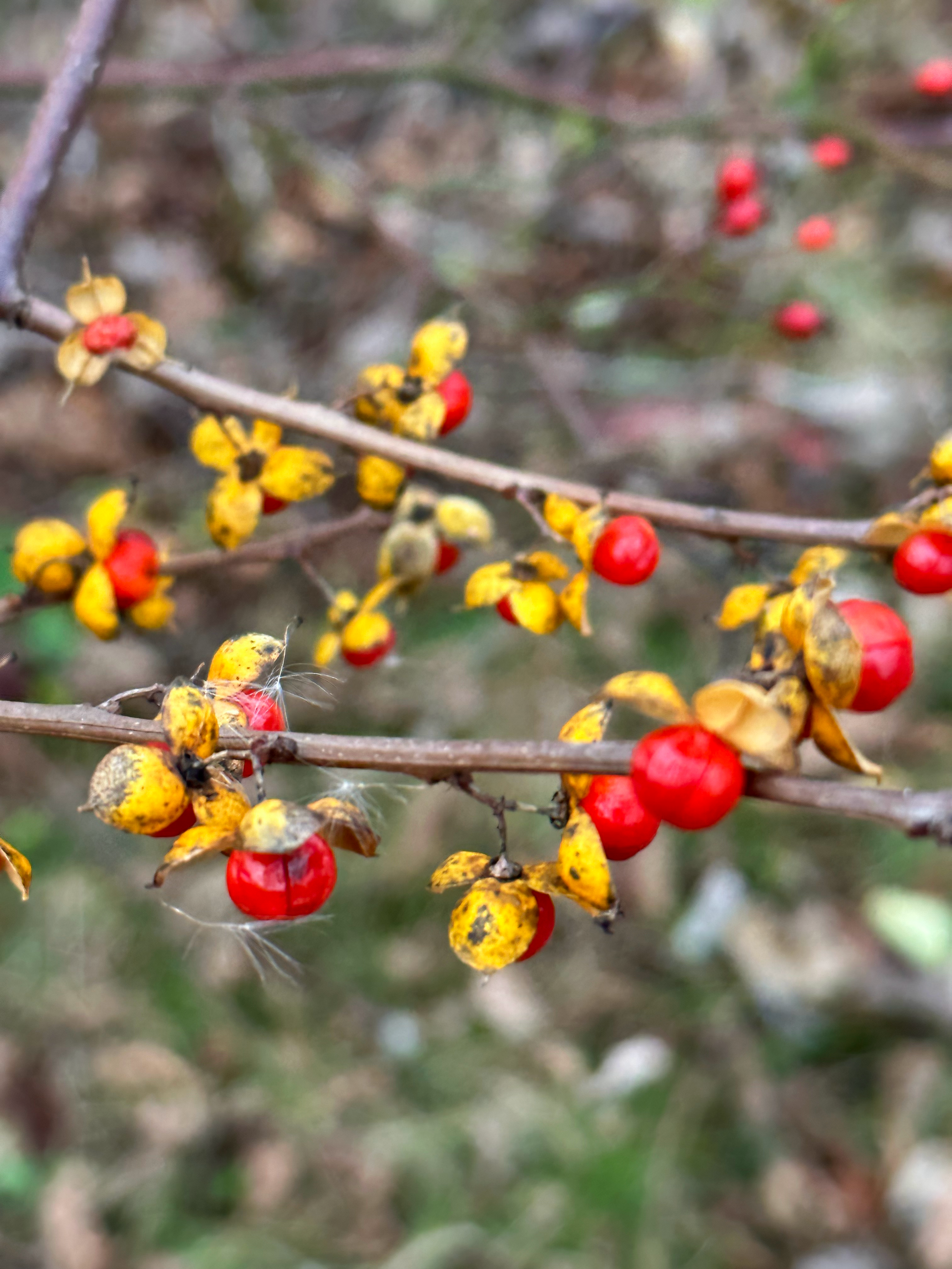 There was a lot of nice fall scenery to enjoy, from these burning bushes (which I realize are not a native species), to bittersweet berries.