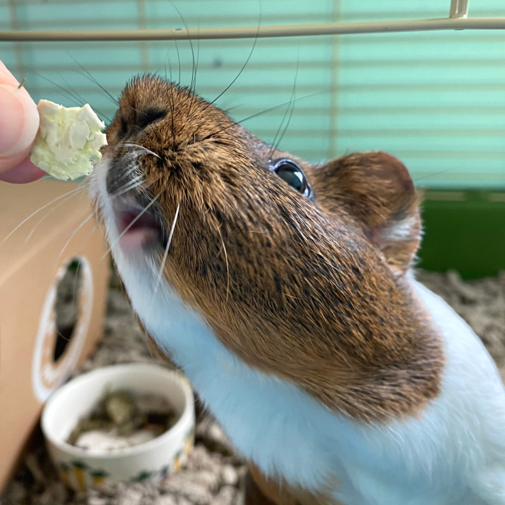 Our guinea pigs are so cute, and even cuter when they get excited over treats! Over the years, we have learned which treats are their favorite, and we also learned which ones are the best for them as well. We also trained the piggies to get excited when we whistle, as they know treats are headed their way when we do so!